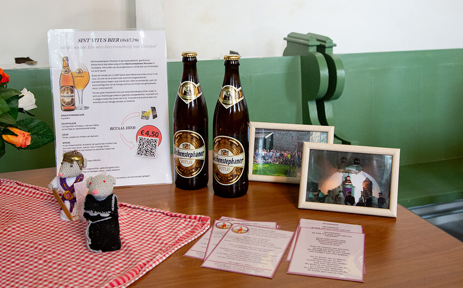 Het voelde als een voorrecht om in alle rust door de kerk te dwalen. Voordat ik weer naar buiten stapte, besloot ik nog iets bij te dragen aan het behoud van dit bijzondere plekje. In het kleine verkooppunt bij de ingang kocht ik, ter ondersteuning van de kerk, twee flesjes Sint Vitusbier