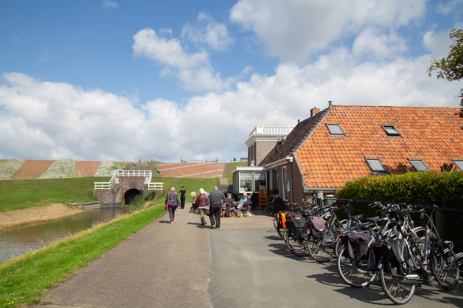Net als de vorige keer was het weer druk bij het restaurant het Zielhoes, een fijne plek om even bij te komen. Het riet op de oever was gemaaid, wat het uitzicht op het voormalige sluisje aanzienlijk verbeterde.