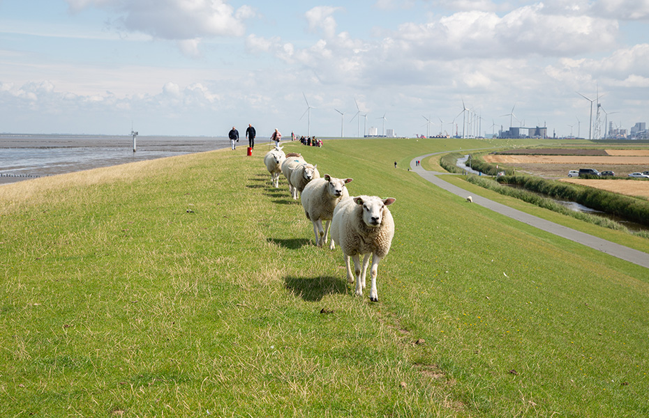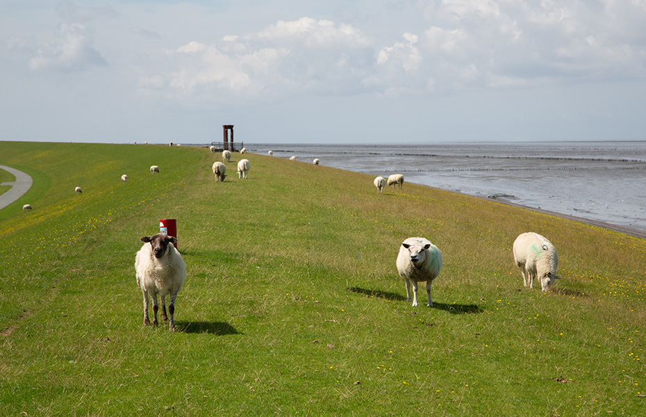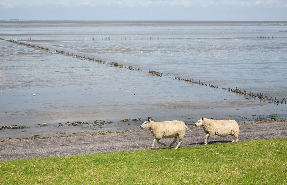 Vanaf de Noordkaap heb je een weids uitzicht over de Waddenzee. Hier heersen vooral stilte, wind en leegte. Toen ik afdaalde naar de kustlijn, keken een paar schapen me wat argwanend aan. Even later renden ze me in een drafje voorbij, alsof ze duidelijk wilden maken dat ik te gast was in hun domein.