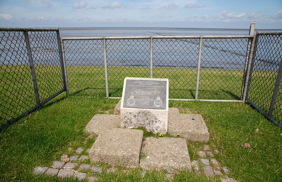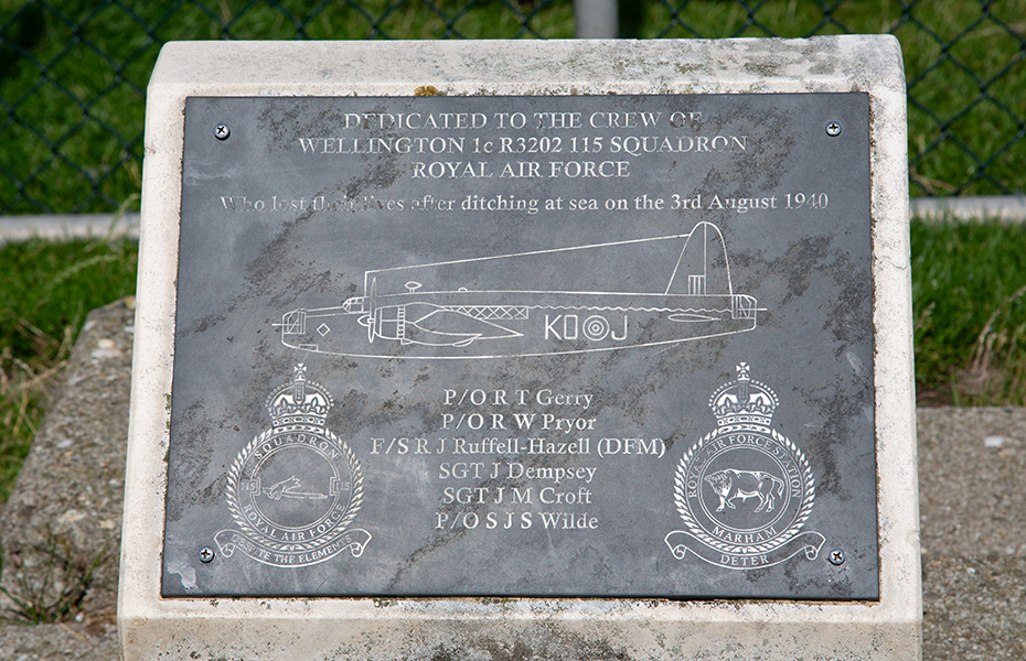 Als eerste richt ik mijn aandacht op het oorlogsmonument. Het Wellingtonmonument is opgericht ter nagedachtenis aan de voltallige bemanning van de Wellington R3202, die tijdens de Tweede Wereldoorlog in de Noordzee is neergestort en daar door ontberingen is omgekomen. Persoonlijk vind ik het jammer dat het monument tegenwoordig wordt omgeven door een weinig fraai hekwerk — het haalt iets weg van de serene uitstraling van deze bijzondere plek.