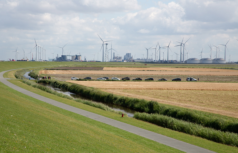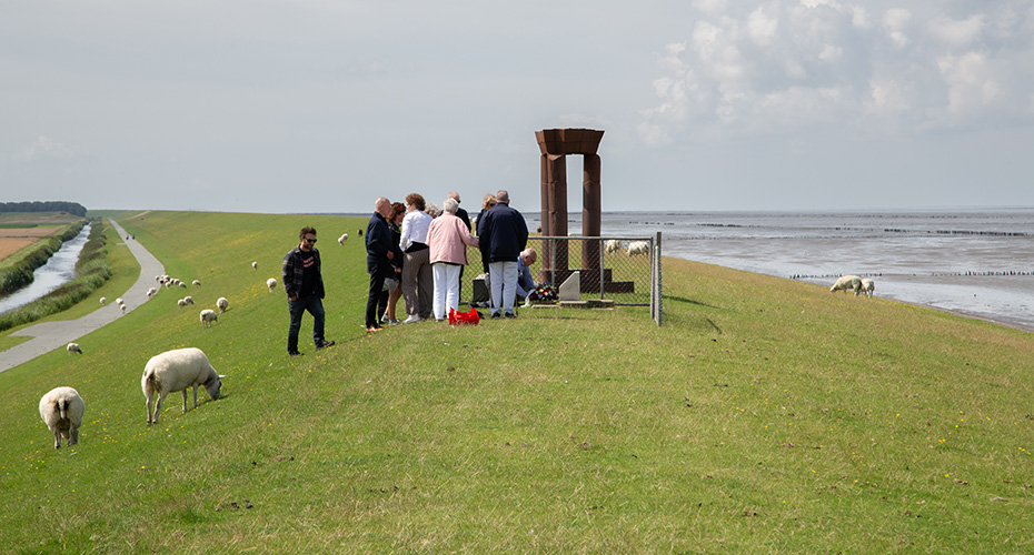 Vanaf het noordelijkste puntje maakte ik een foto van de Eemshaven. Tot mijn verbazing stonden er opvallend veel auto’s langs de toegangsweg. Toen ik terugwandelde richting mijn auto, kwam ik een groep mensen tegen die Engels spraken. De twee achterste vrouwen, die met elkaar Nederlands spraken, vroeg ik of er iets bijzonders aan de hand was. Zij vertelden dat zij daar samen met nabestaanden waren van de omgekomen bemanningsleden van de Wellington. Deze maand was het precies 85 jaar geleden dat het toestel verongelukte. Ter nagedachtenis legden de nabestaanden een krans bij het inmiddels tien jaar oude monument. Zie ook de website van Oorlogsgravenstichting.