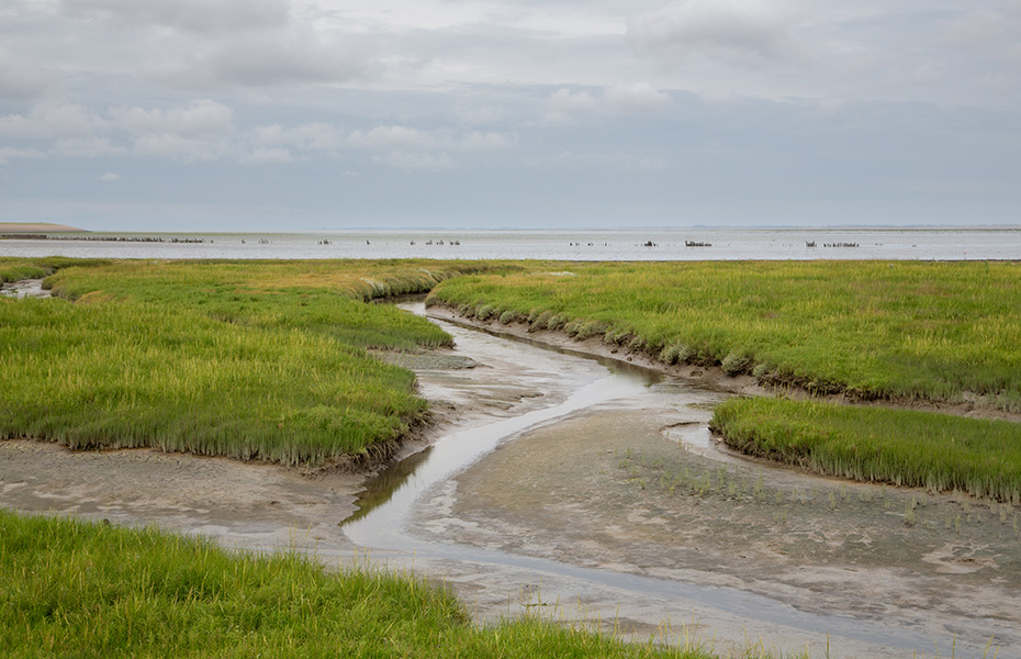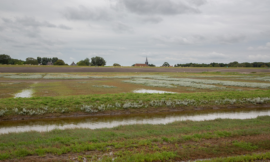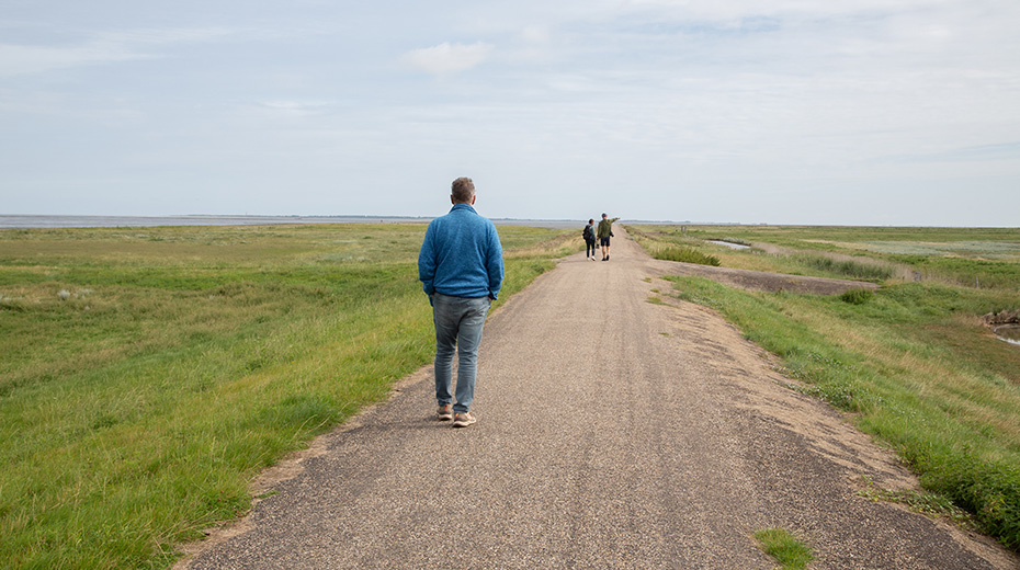 Vanaf het uiterste puntje van de pier wandelden we via de Peazemerlannen weer terug naar de Waddendijk. Dit buitendijkse natuurgebied, met zijn kwelders, slenken en zilte planten, vormt een prachtig overgangsgebied tussen land en Wad.