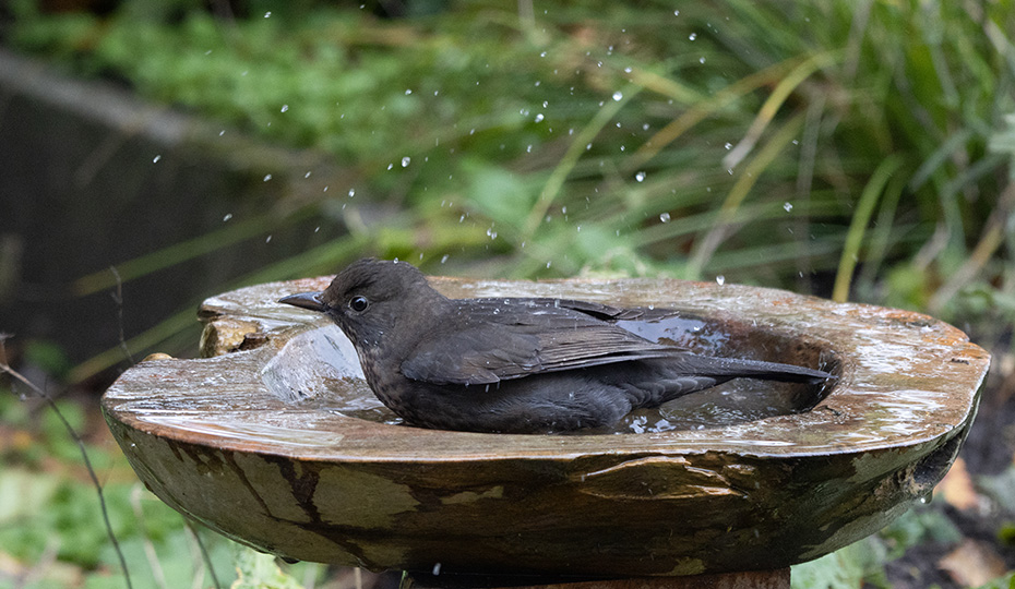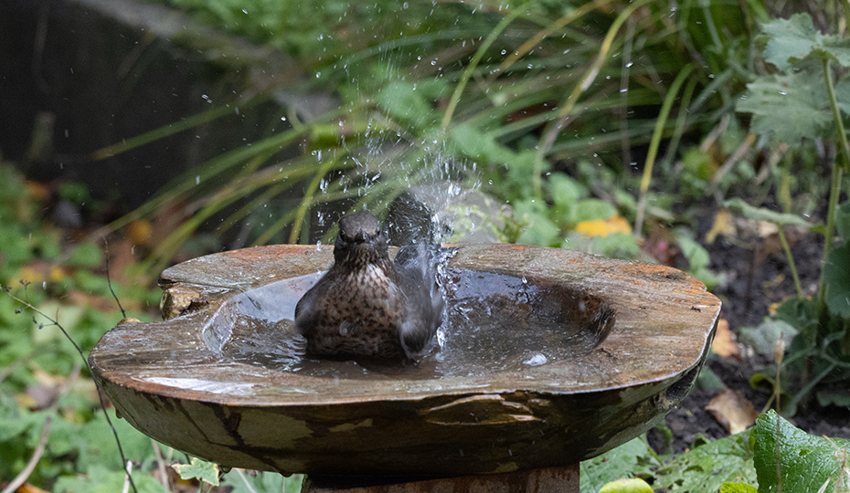 De waterschaal in de voortuin wordt weer dagelijks gebruikt om uit te drinken en in te badderen.