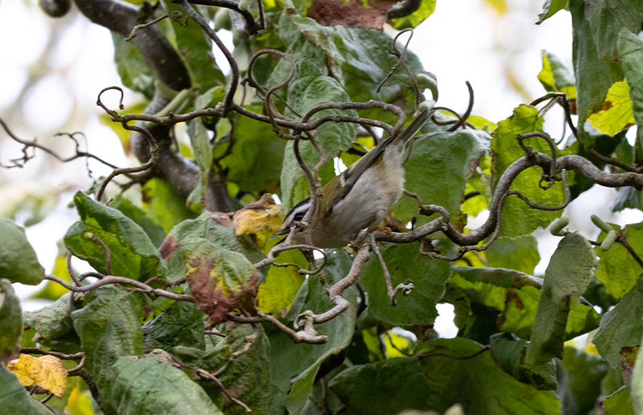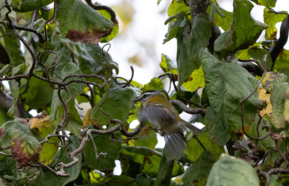 Een paar dagen geleden maakte ik met mijn camera een rondje door de tuin, op zoek naar tuinvogels. Toen ik in de buurt van de krulhazelaar kwam, zag ik een piepklein vogeltje tussen de takken rondscharrelen. Al snel had ik in de gaten dat het een goudhaan moest zijn. Pas later ontdekte ik met behulp van ObsIdentify dat het zelfs een vuurgoudhaan was! Op de website van Vogelbescherming las ik wat het verschil is tussen deze twee soorten.