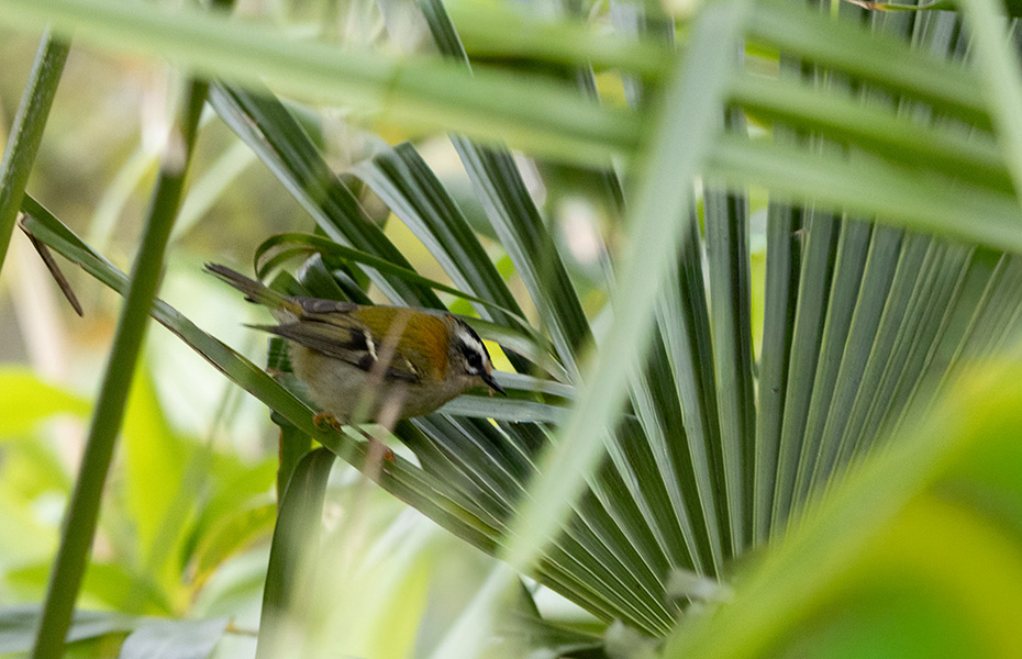 Het vogeltje was overigens helemaal niet schuw, toch was het een flinke uitdaging om het goed op de foto te krijgen. Vuurgoudhaantjes blijven zelden langer dan een paar seconden op dezelfde plek zitten. De foto’s zijn dan ook niet van topkwaliteit – voor mij draait het vooral om de waarneming. Ik was verrukt dat we dit bijzondere vogeltje in onze eigen tuin mochten begroeten!