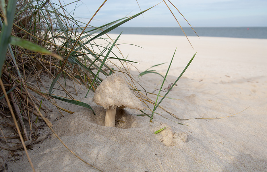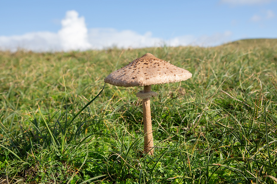 Onderweg kwamen we tot onze verrassing nog bloeiende korenbloemen en koekoeksbloemen tegen. Op een duin stond deze forse parasolzwam.