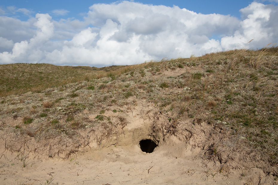 Tijdens onze wandeling zagen we wel de ingangen van verschillende konijnenburchten, maar de bewoners zelf lieten zich niet zien. In de herfst en winter blijven konijnen vooral ondergronds, waar ze in hun burchten beschut zijn tegen kou en regen.