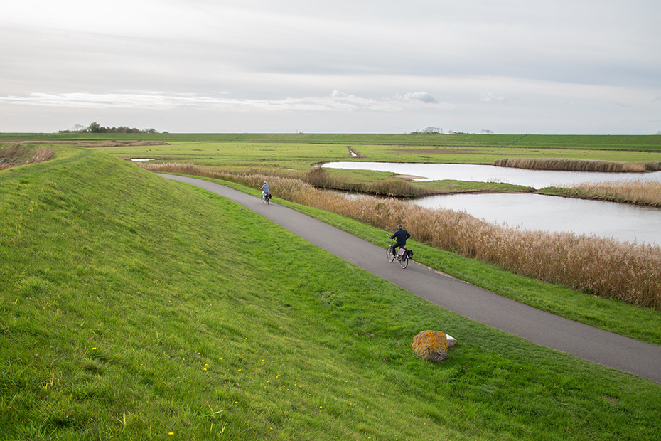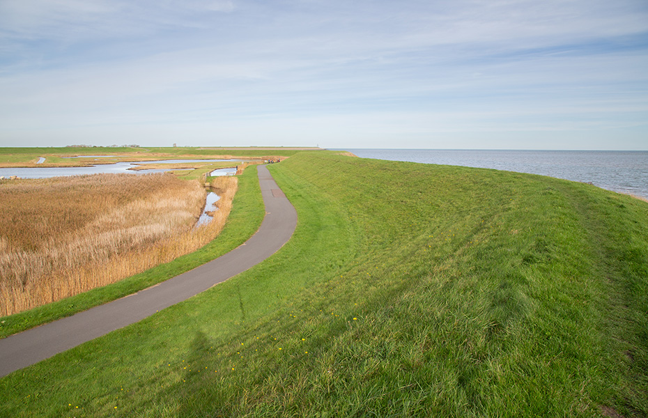 Tijdens mijn klim naar de top van de dijk kwam er ineens een enthousiaste Golden Retriever op me afgerend. Voor mij natuurlijk hét moment om dit vast te leggen. Vanaf de dijk had ik een prachtig uitzicht over Zandkes en de Waddenzee.