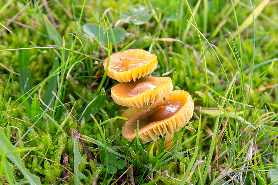 Aan de binnenzijde van de dijk vond ik een aantal paddenstoelen, diep verscholen tussen het groen.
