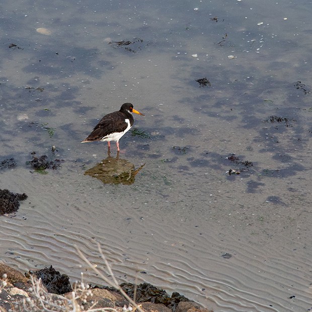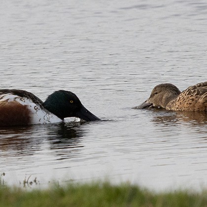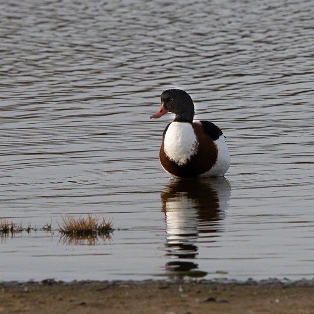 Er waren niet heel veel vogels te zien, maar ik wist er toch een paar vast te leggen: een rustende kluut en een rustend vrouwtje slobeend, een paartje slobeenden, een bergeend, een groep smienten en een scholekster.