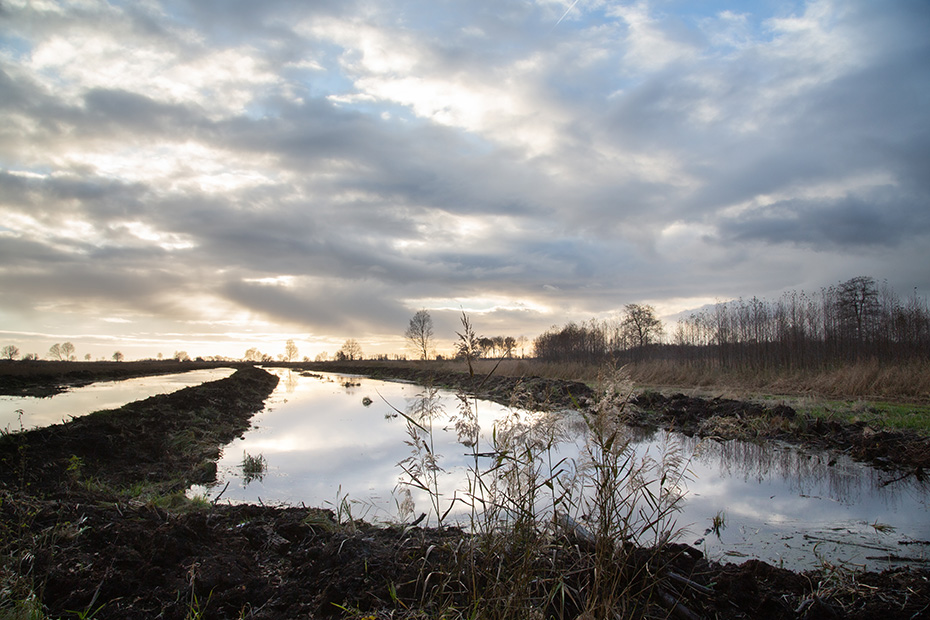 Daarna reden we naar Wetering West, waar momenteel een grootschalig project in volle gang is: het kappen van bos en het herstellen van de oorspronkelijke trekgaten en legakkers. Terwijl we daar stonden te fotograferen, kwam een bewoner op ons af. Ik ken hem al langer, dus we maakten even een praatje. Natuurlijk vroeg ik wat hij vond van het resultaat tot nu toe. Hij vond het er op zich mooi uitzien, maar merkte op dat de kronkelige legakkers wel wat netter hadden gekund. Vroeger, tijdens het turfsteken, lagen die namelijk kaarsrecht.