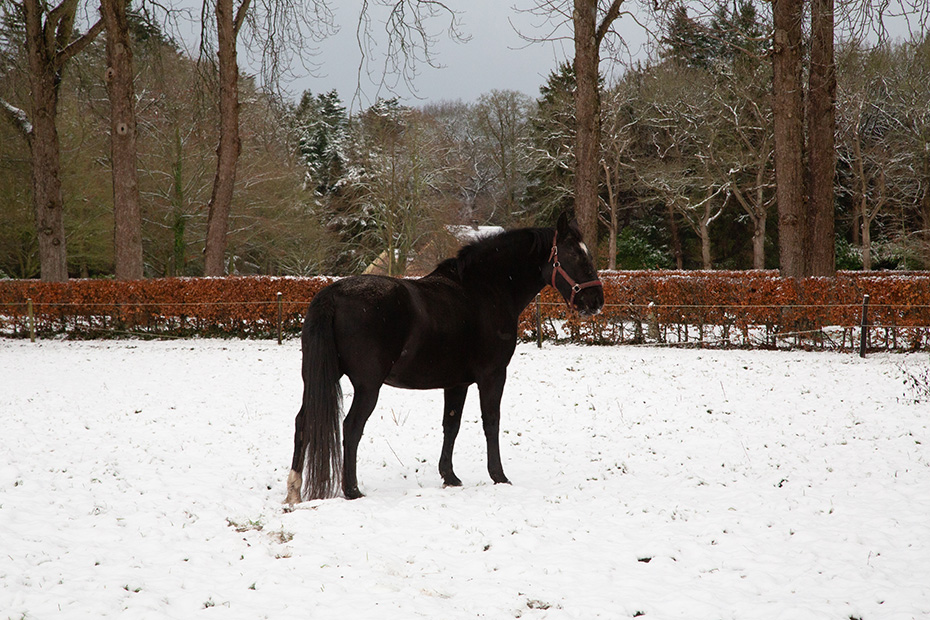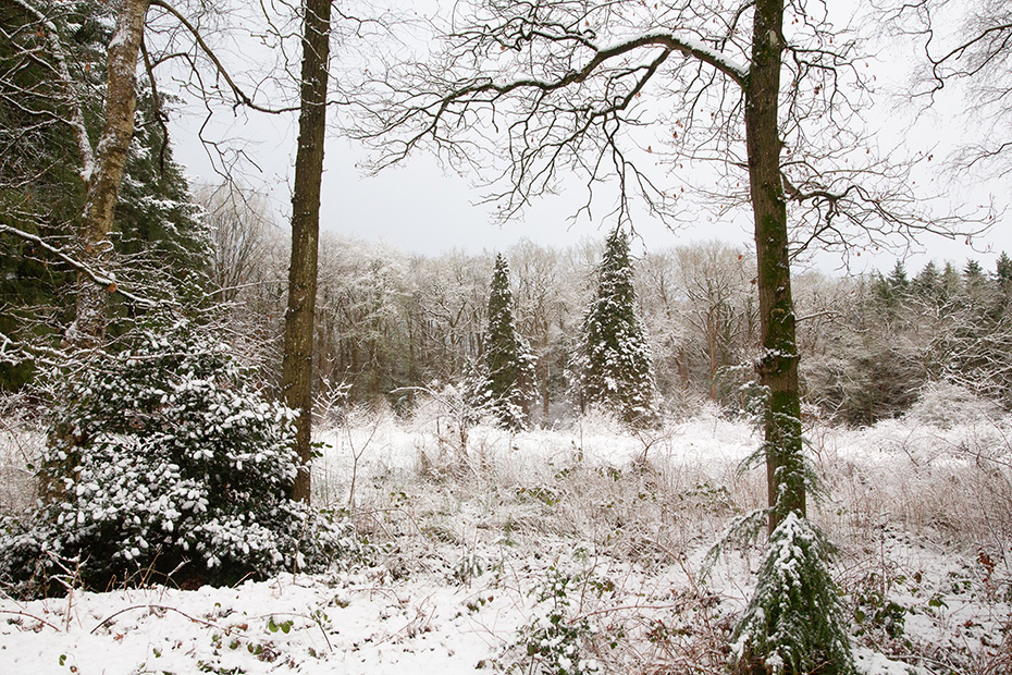 Vannacht keek ik meerdere keren uit het raam en telkens zag ik dikke sneeuwvlokken naar beneden komen. Dat beloofde veel goeds voor een fotosessie in de vroege ochtend. Maar toen ik wakker werd, viel het toch wat tegen: er lag slechts een dun laagje sneeuw en op bomen en struiken was het meeste alweer verdwenen.