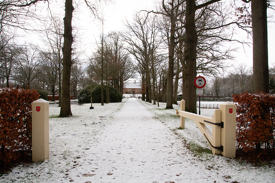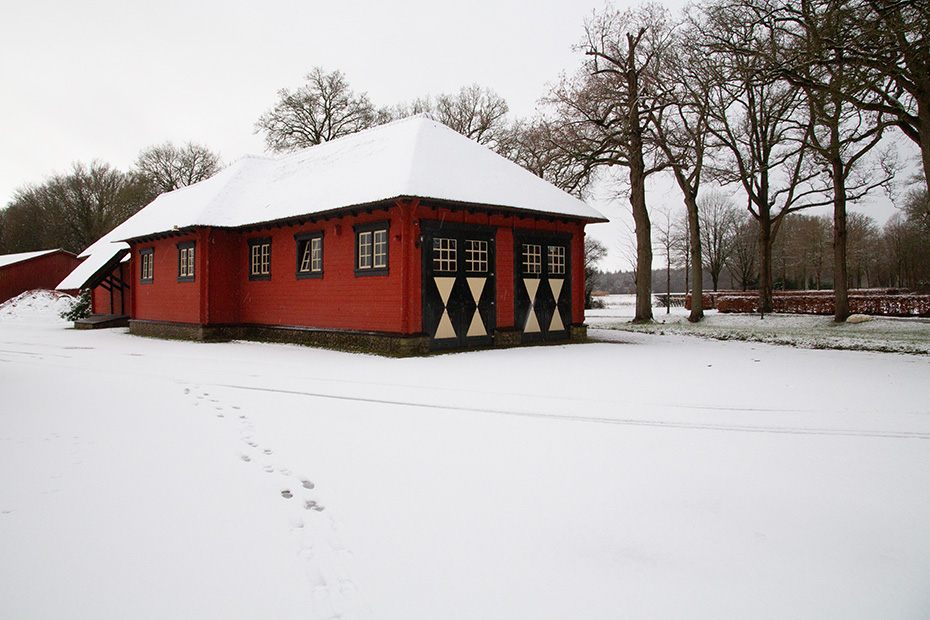 Op landgoed De Eese staan diverse fraaie gebouwen, waarvan een aantal in warme roodtinten is uitgevoerd. Ze vormen een prachtig contrast met de sneeuw en zijn daardoor zeer geschikt voor een winterse fotosessie.