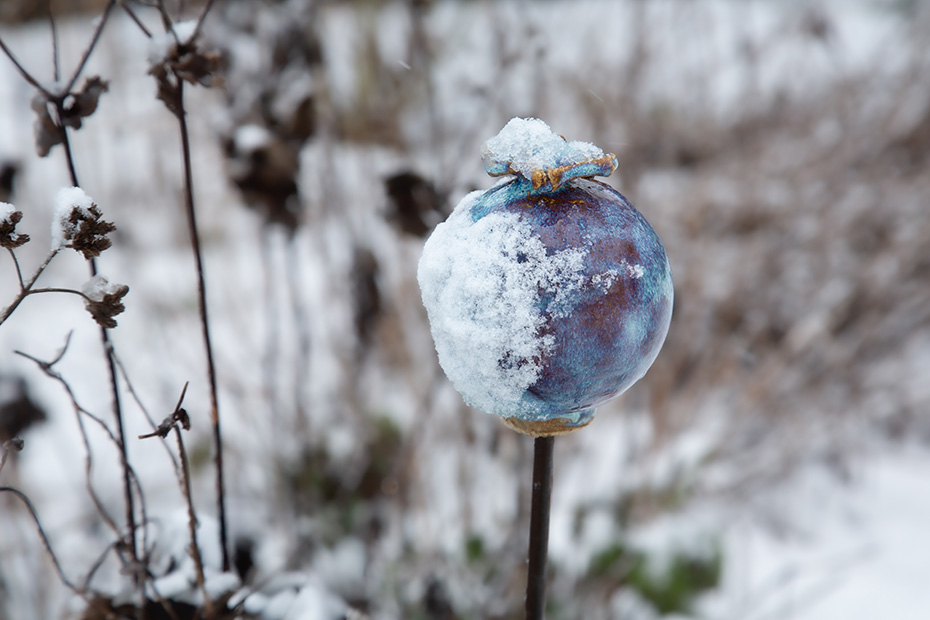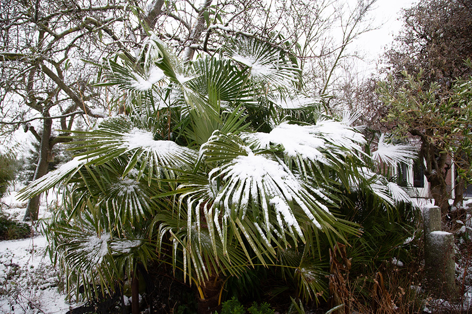 Thuis heb ik de sneeuwbui afgewacht en zodra het weer droog was, maakte ik een rondje door de tuin. Gisteren had één ijsvogeltje een sneeuwhoedje op, vandaag hadden ze dat alle drie. De winterharde palmen, bedekt met een laagje sneeuw, blijven voor mij altijd echte eyecatchers. Op het moment van schrijven is het inmiddels weer prachtig weer en begint het opnieuw te kriebelen om er weer op uit te gaan…