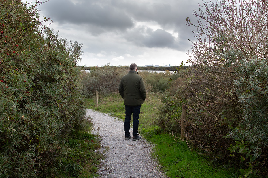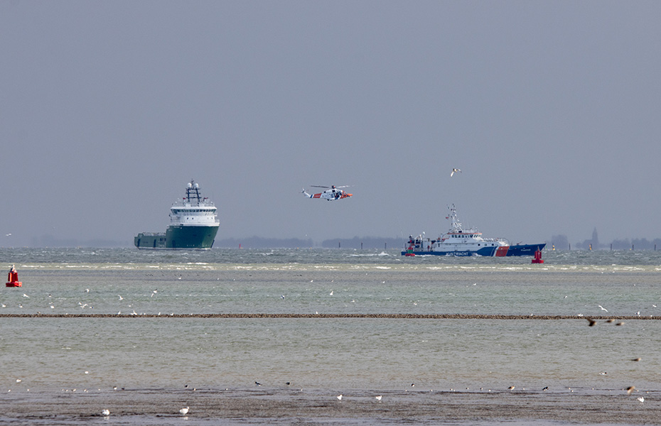 Mijn man en ik reden naar de Mokbaai, waar we de auto parkeerden voor een wandeling langs de Horsmeertjes. Toen we daar stonden, kwam de veerboot aan. Een eindje verderop leek het dat de kustwacht bezig was met een oefening.