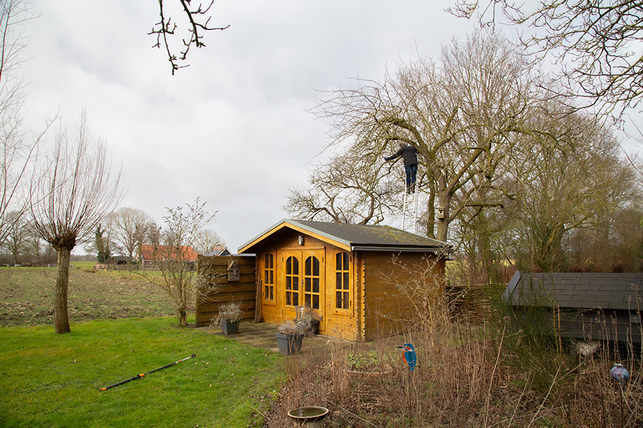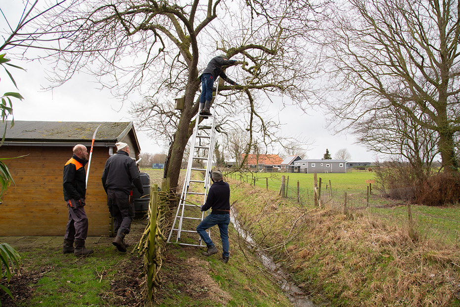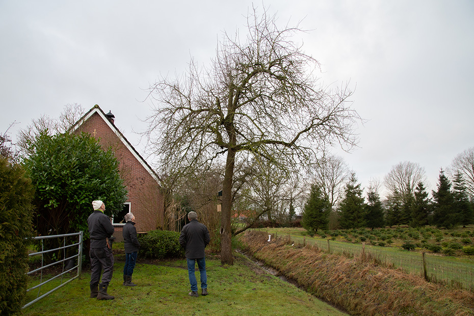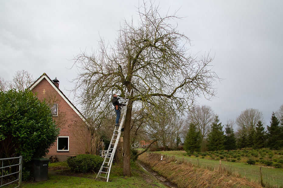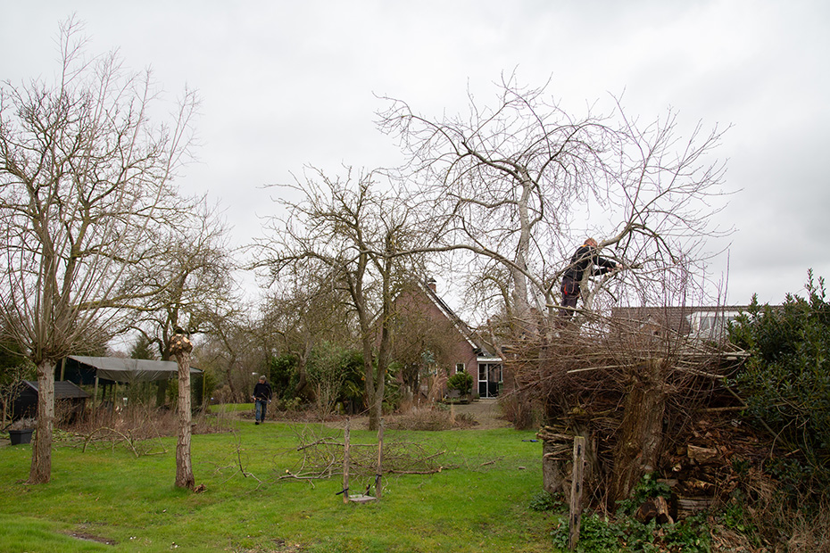 In onze tuin staan veertien hoogstamfruitbomen. Ze zijn geplant door de vorige eigenaar en zijn pakweg vijftig jaar oud. Om deze bomen vitaal en mooi in vorm te houden, krijgen we eens in de twee jaar hulp van de Hoogstambrigade. Dit is een groep vrijwilligers die met enorme toewijding en vakmanschap hoogstamfruitbomen snoeit