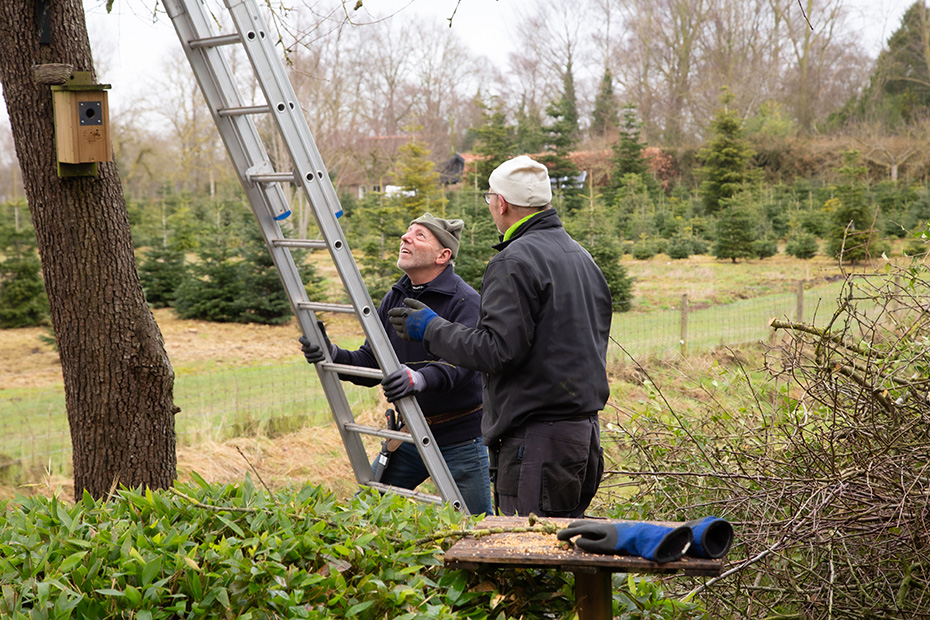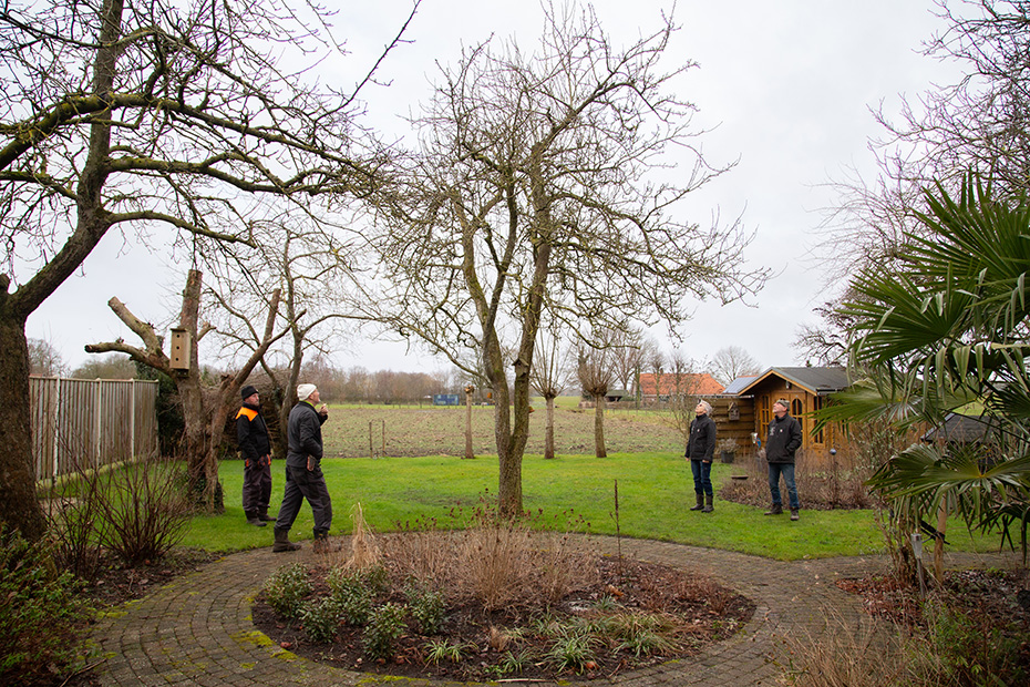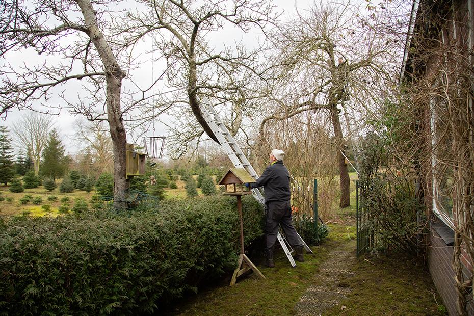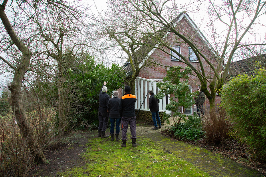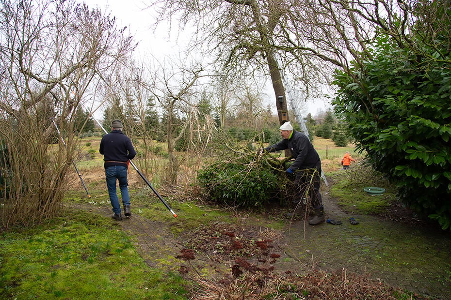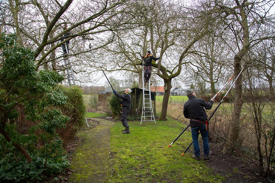 Vorige week waren wij weer aan de beurt. Zoals altijd begonnen ze met een rondje door de tuin om samen te bekijken hoe de bomen dit keer gesnoeid moesten worden. Tijdens dat korte werkoverleg werd er aandachtig gekeken, gewezen en overlegd: welke tak mag blijven, welke moet wijken?