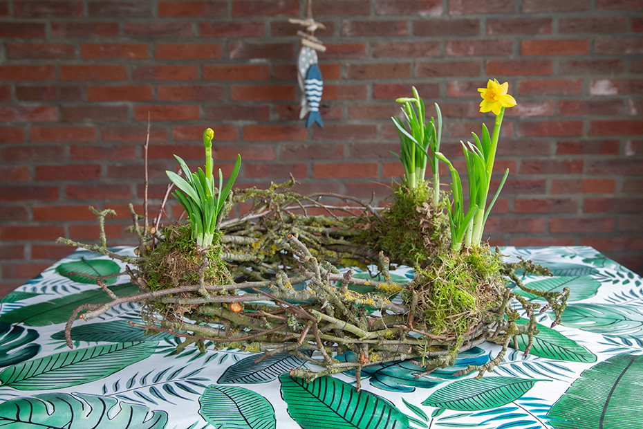 De coördinator van de Hoogstambrigade kwam op de snoeidag langs en nam een aantal gesnoeide takken van appelbomen mee. Een dag later stond hij opnieuw bij ons op de stoep, dit keer met een prachtige, handgemaakte krans van onze eigen appeltakken. Een lief gebaar! De mooie krans kreeg een plekje op de tafel onder de veranda.