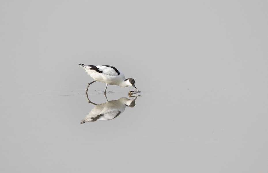 In het eerste vierluik laat ik een paar kluten zien, die met hun snavels heen en weer door het water zwaaiend foerageren in ondiep water. Deze foto’s maakte ik vanuit de kijkhut.