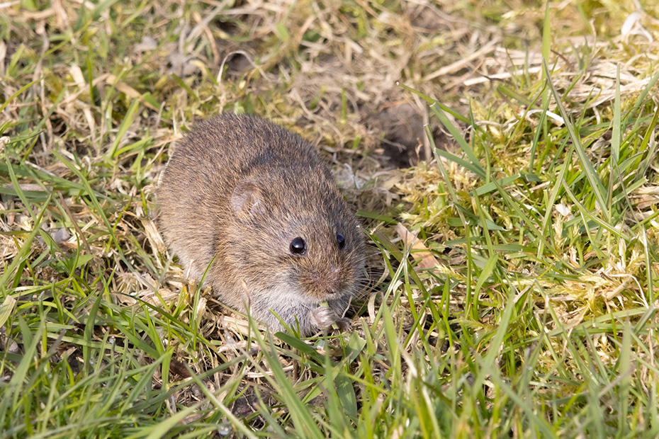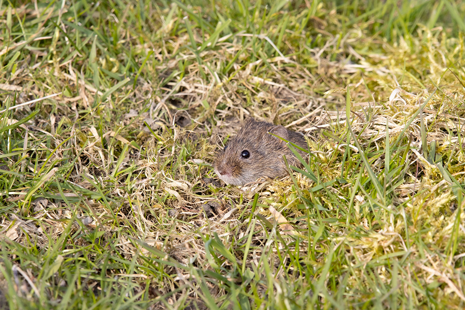 Terwijl ik foto’s maakte van de tureluur, zag ik in mijn ooghoek meerdere keren iets bewegen. Het bleek een veldmuisje te zijn, dat telkens uit zijn holletje kwam, snel iets opat en weer verdween. Het was een grappig en aandoenlijk schouwspel.