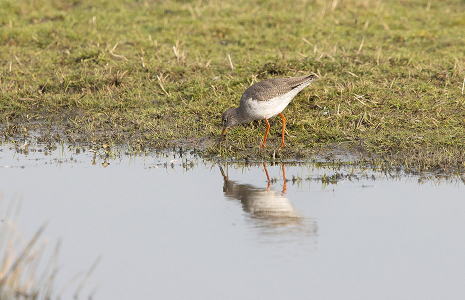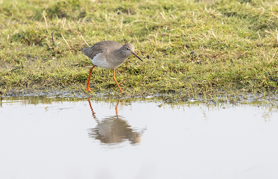 Even later wandelde ik over het pad door het vogelrijke plasdrasgebied. Langs de waterlijn scharrelde een tureluur.