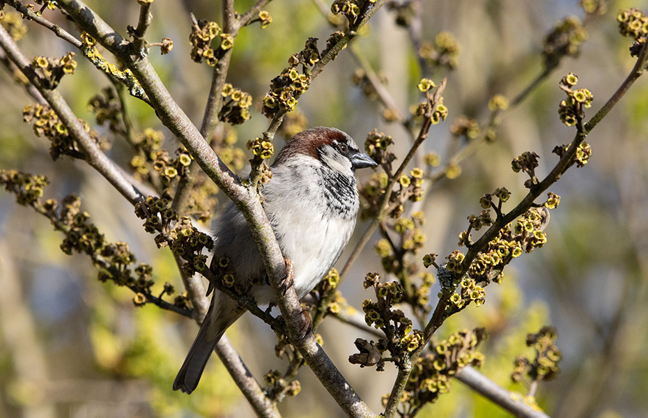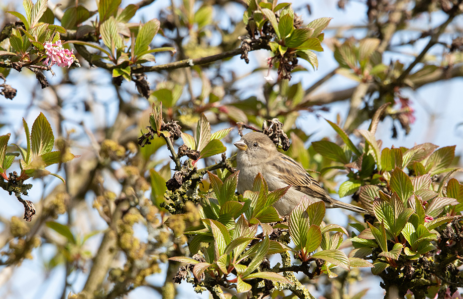Er was volop leven: overal om me heen waren vogels druk bezig met nestelen. De huismussen hebben hun plek gevonden in de klimop en onder de dakpannen. De heggenmus geeft de voorkeur aan de coniferenhaag. De gaaien zijn begonnen aan de bouw van een nest in de laurier. En de mezen? Die laten zich regelmatig zien bij de nestkasten, alsof ze hun opties nog even rustig aan het verkennen zijn.