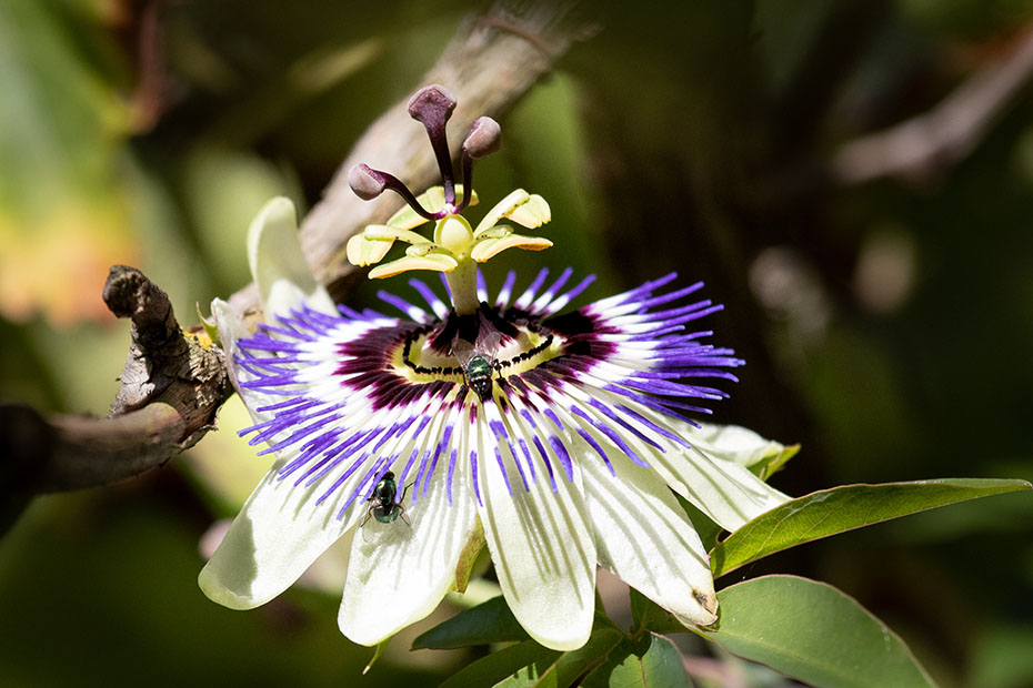 In de zomer hadden we tropische temperaturen en extreme droogte. In het najaar fikse regenbuien en hagel. Het maakt de passiflora niet uit. Deze plant bloeit maar door. Iedere dag komen er weer knoppen uit. Prachtig om te zien.