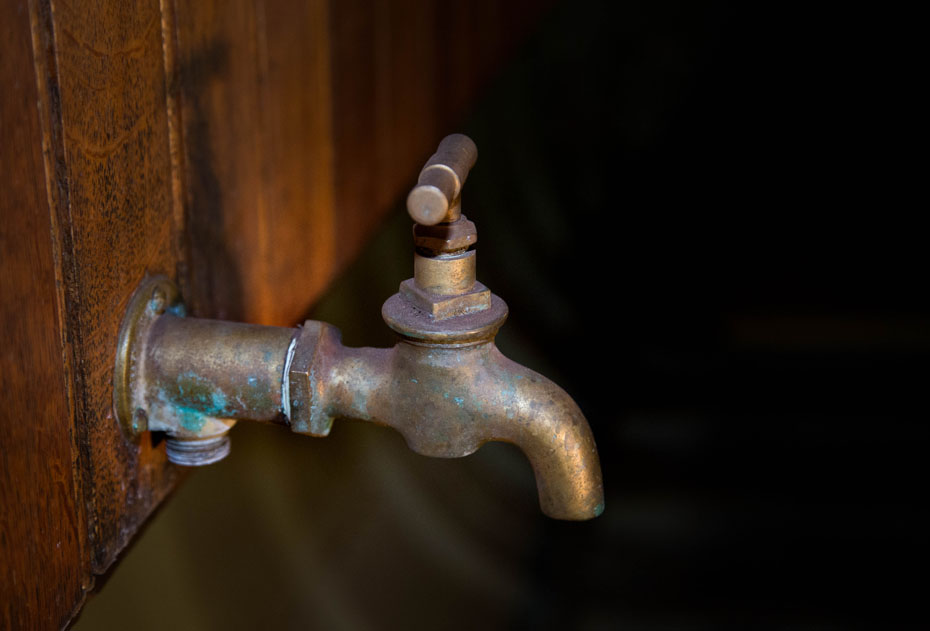 Het loodzware granieten aanrechtblad staat nu tijdelijk in het midden van het ruim. Het fungeert nu als werkblad voor het gereedschap en andere hulpmiddelen.