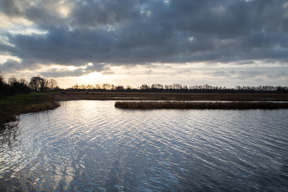 Nadat de golfslag was verdwenen maakte ik een foto van het kalme wateroppervlakte.