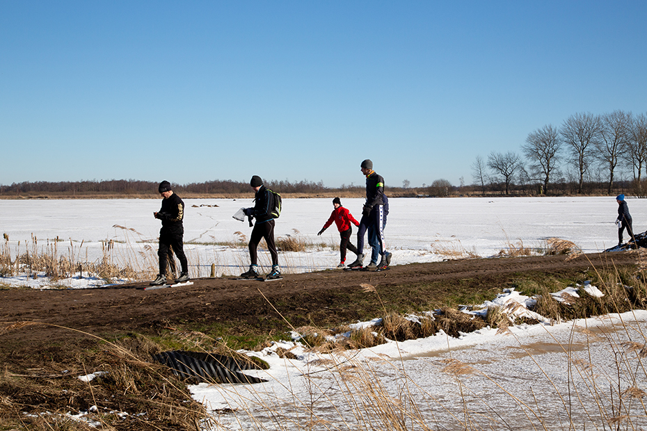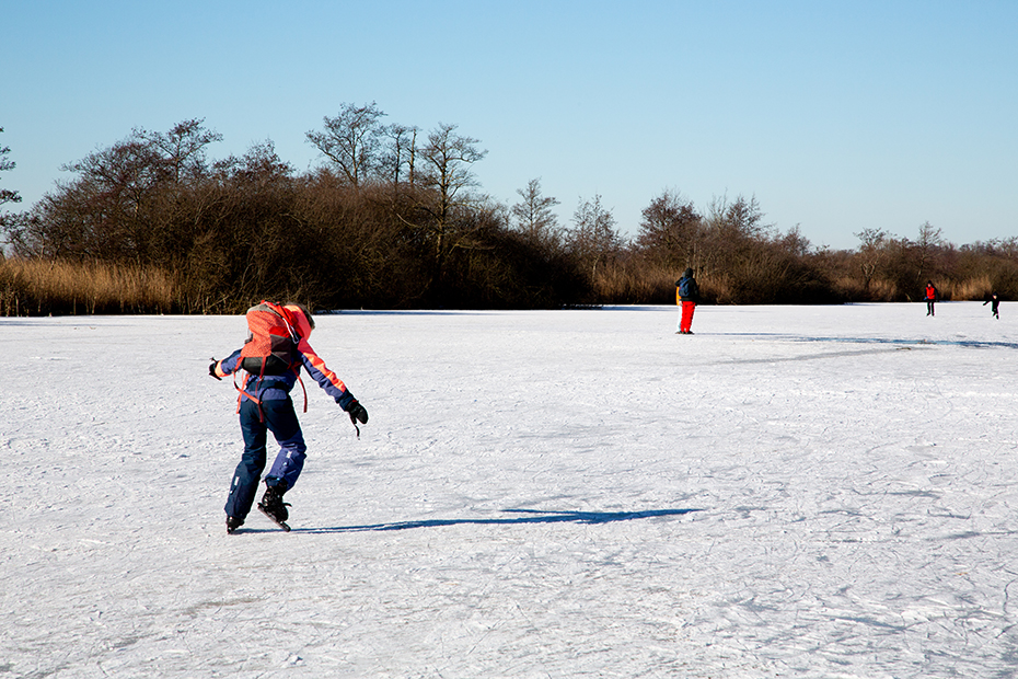 Ons eerste doel was de Hooidammen. Dat gebied is per uitstek geschikt om te schaatsen op natuurijs. Vele schaatsers gebruikten dit punt om te starten en bonden hier hun schaatsen onder.