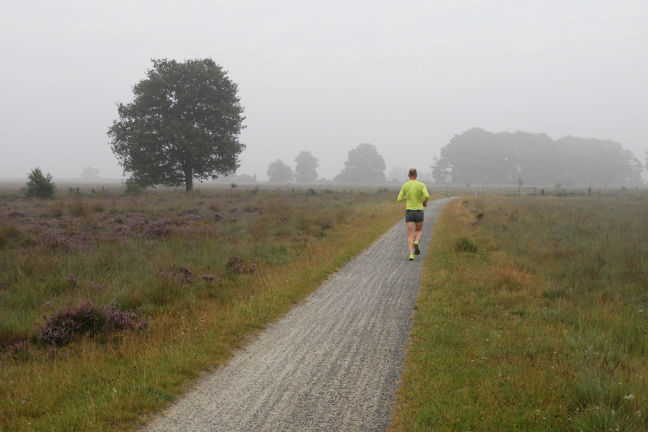 Vanaf de parkeerplaats wandelde ik de heide op. De zon stond nog hoog dus ik zou nog wel wat geduld moeten hebben. Het was er gezellig druk op de heide. Meerdere mensen maakten een wandeling over de heide. Ook joggers en mountainbikers waren volop bezig met het bedrijven van hun sport.