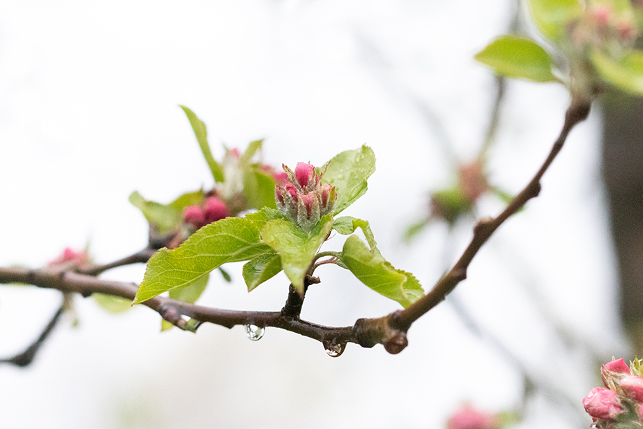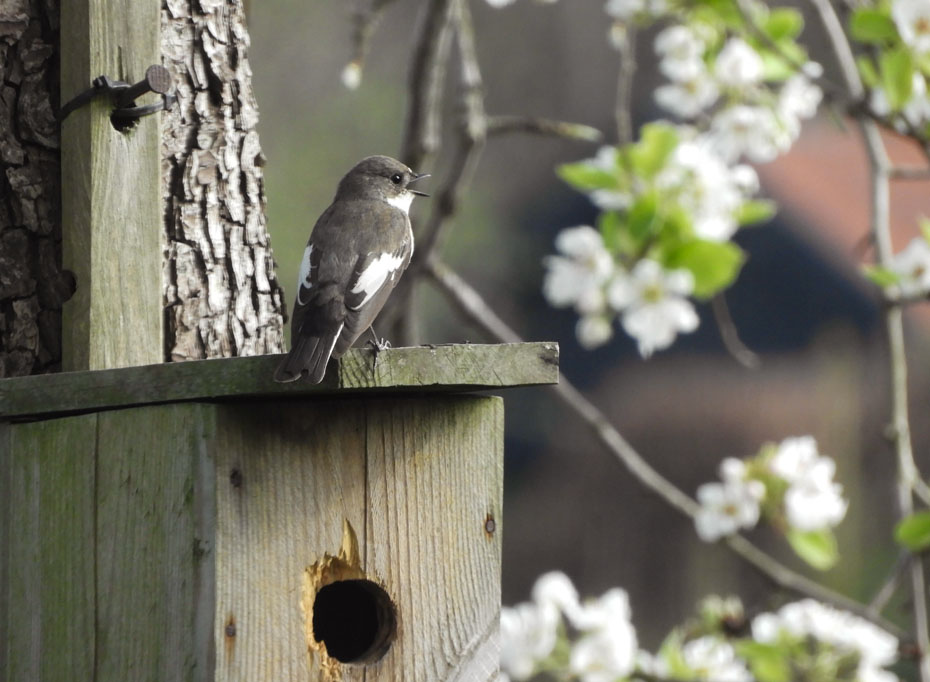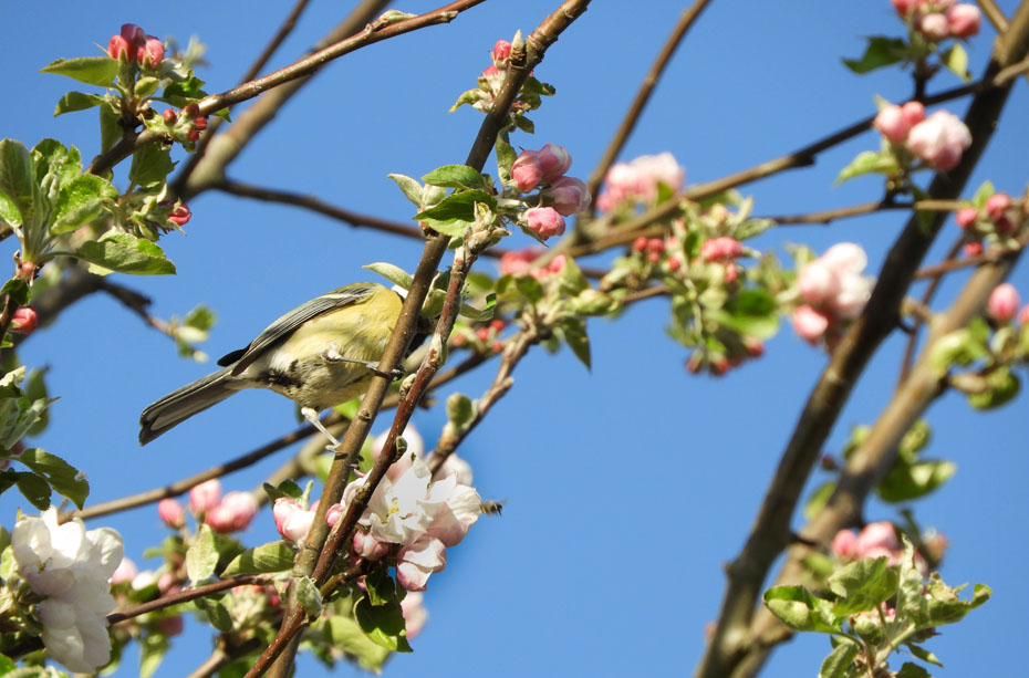 De ouden zijn dan ook volop aan het zoeken tussen de bloesem naar voedsel voor hun jongen.