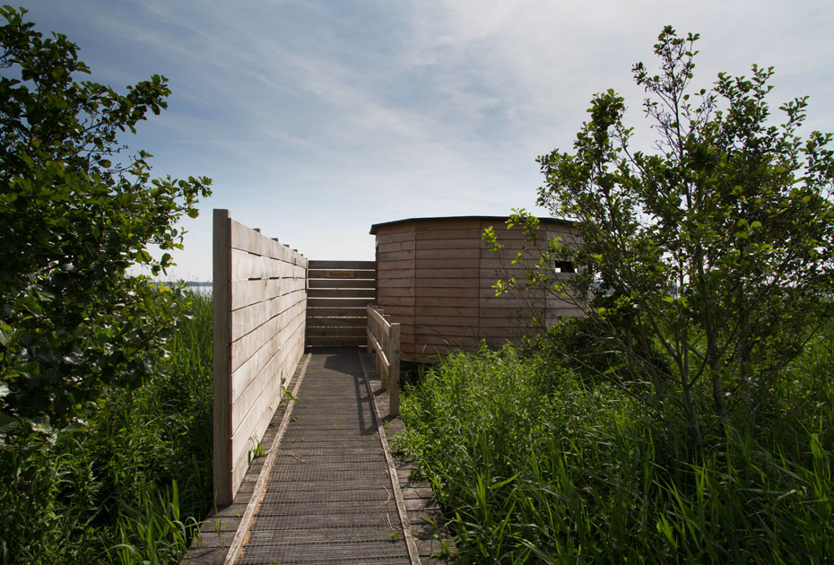 In de buurt van de kijkhut zwom een fuut met jongen.