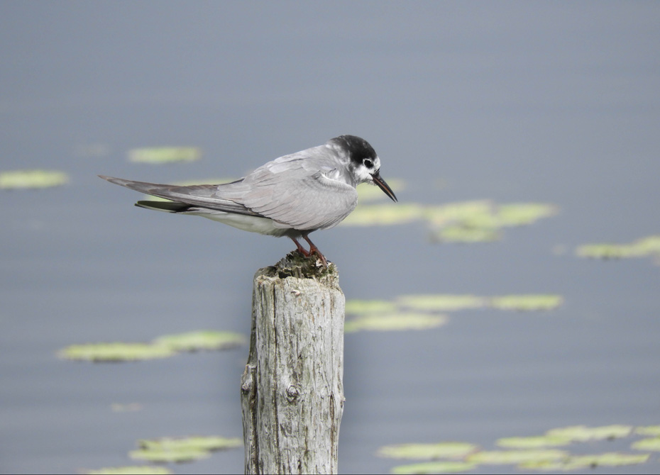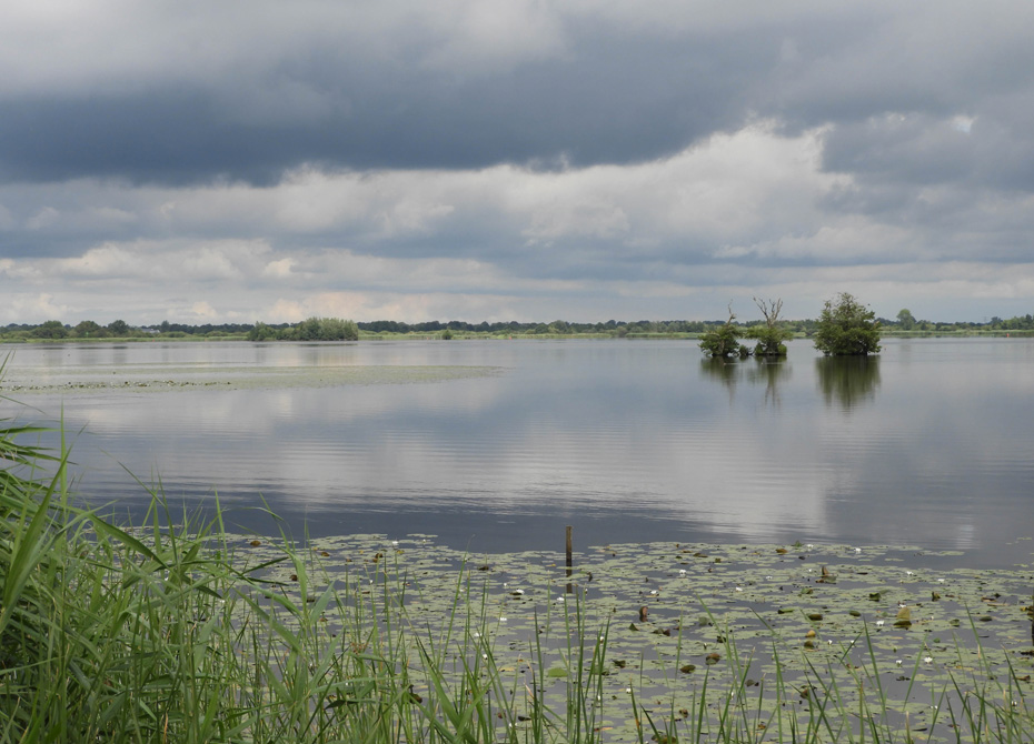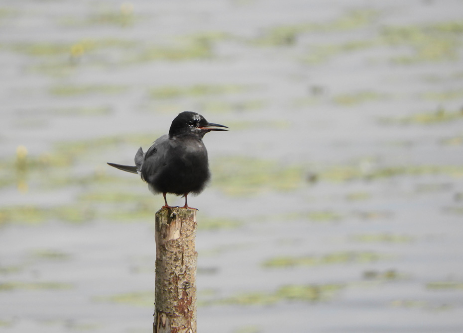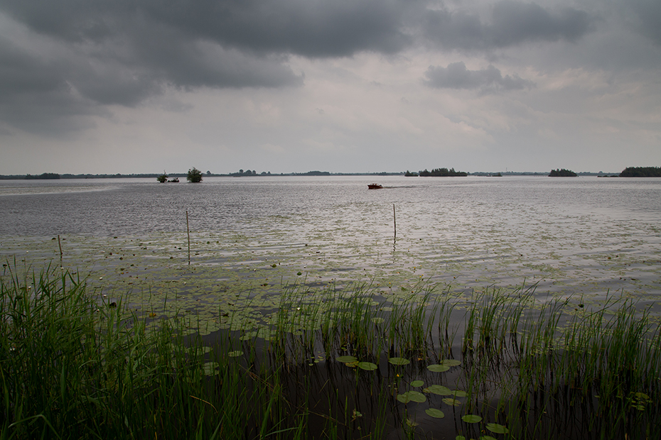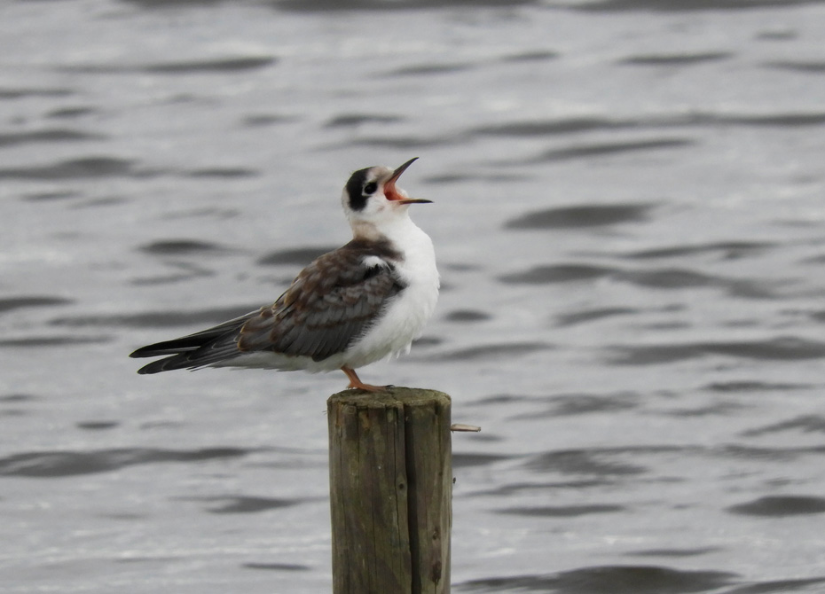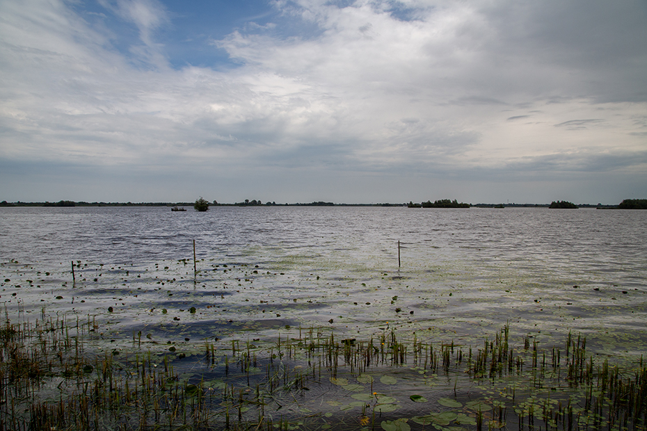 We keken uit over een winderige plas. Er was geen zwarte stern te zien. Het wolkendek brak iets open om vervolgens even later weer dicht te trekken.