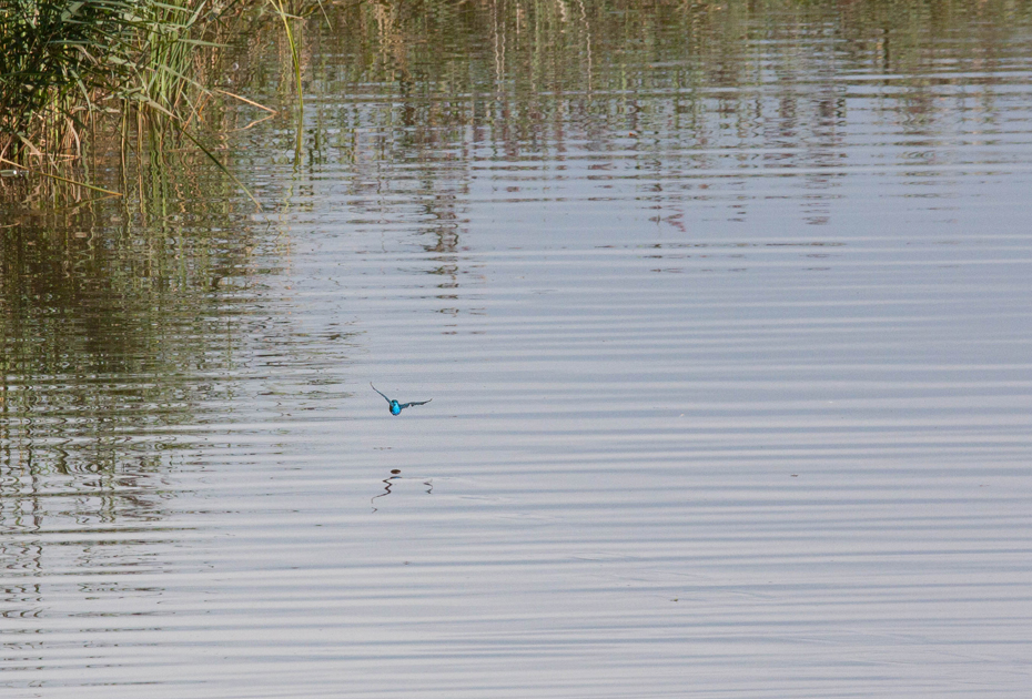 Terwijl ik op weg was naar de vogelkijkhut waren twee mannen bezig om vanaf een trailer een boot te water te laten. Op dat moment dacht ik nog dat het vissers waren. Toen ik even later op de oever van de Linde stond en inzoomde op de waternavel en op het bootje heb ik het idee dat ze toch met een ander doel waren gekomen. Misschien dat het onderzoekers waren.