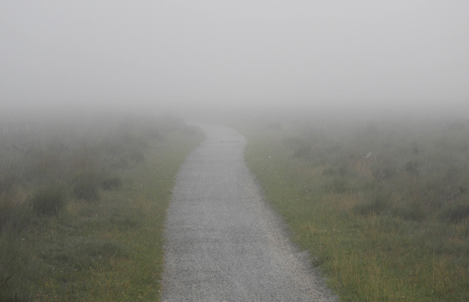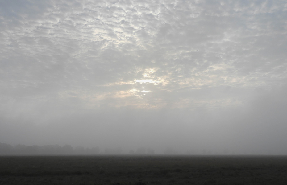 Het was mistig en bewolkt. Het was er stil. Doodstil.