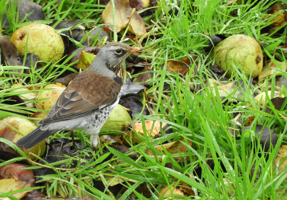 Op een ochtend hoorde ik gekwetter van vele spreeuwen in de perenboom in onze voortuin. Het is de tijd van het jaar dat de spreeuwen de rijpe peren plunderen die nog boven in de boom hangen. De perenboom werd voor een deel beschenen door de ochtendzon. Dat leek mij een goed moment om de camera ter hand te nemen. Vanuit de slaapkamer, door het raam, maakte ik een fotoserie. Net als huismussen leven spreeuwen in een groep. Dat doen ze voor de veiligheid want meer ogen hebben de vijand sneller in beeld. Ze vliegen samen en foerageren ook samen. Dat betekent wel dat er dan gedeeld moet worden. Als er één peer in trek is bij meerdere spreeuwen dan volgen ze het First in, First out principe. Kennelijk werkt dat goed…