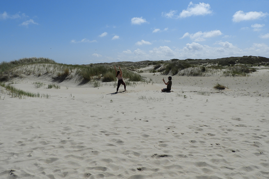 In dit bijzonder landschap waren een man en een vrouw bezig met een fotoshoot of video-opname.