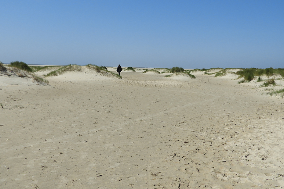 We liepen eerst een stukje over het strand langs de Waddenzee.