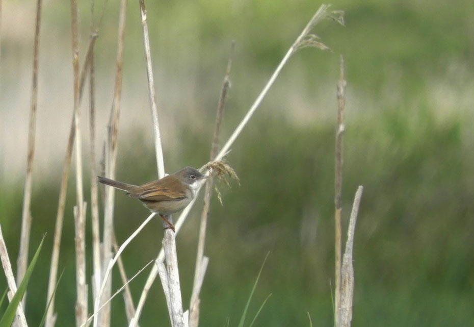 Terwijl ik stond te fotograferen bij de Twitterhut zag ik een vogeltje aan een rietstengel hangen. Door flink in te zoomen met de Nikon bridgecamera kreeg ik het vogeltje aardig in beeld. Ik kreeg één kans en toen was de vogel weer gevlogen. Op de computer zag ik pas wat voor vogeltje het was. Het is een grasmus. De foto is niet perfect, maar omdat het mijn eerste grasmus is mag deze hier een plekje krijgen.