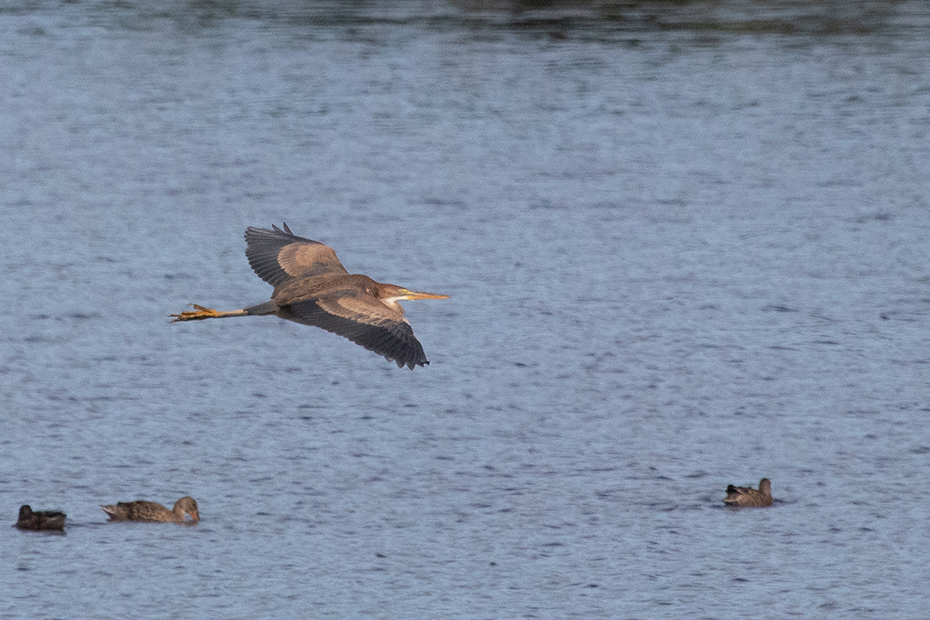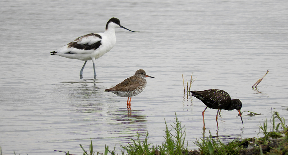 Als titel gebruikte ik ‘Vriendelijke mensen in de kijkhut’ en dat heeft een reden. Je kunt het soms treffen dat mensen c.q. vogelaars allesbehalve vriendelijk zijn. Of ze zeggen geen woord of ze kletsen honderduit als ze hun buit binnen hebben. Deze keer troffen we vriendelijke mensen. Een man en een vrouw waren echte vogelaars, er ontging hen werkelijk niets en daarbij wisten ze alles op naam te brengen. En wat nog het mooiste was, ze waren bereid om het allemaal met ons te delen. Op onderstaande foto staat links een putter, een juveniel. In het midden vliegt een grote stern op de rechter foto vliegt een bruine kiekendief.