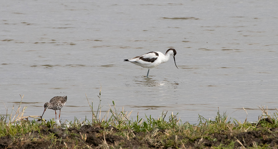 In de kijkhut was het redelijk druk. We waren amper de kijkhut binnen of een vogelaar wees mij op drie watersnippen op de oever tegenover de kijkhut. Op het moment dat ik mijn camera in stelling had gebracht vlogen de drie watersnippen weg. Maar niet getreurd, de man had nog een verrassing in petto. Hij wees op de watersnippen die stonden te rusten op de boomstronken. Als de vogelaar mij daar niet op gewezen had, dan had ik ze niet ontdekt. Watersnippen staan er om bekend dat ze heel goed opgaan in de natuur. Even later ging een van de twee watersnippen foerageren op de oever tegenover de kijkhut.