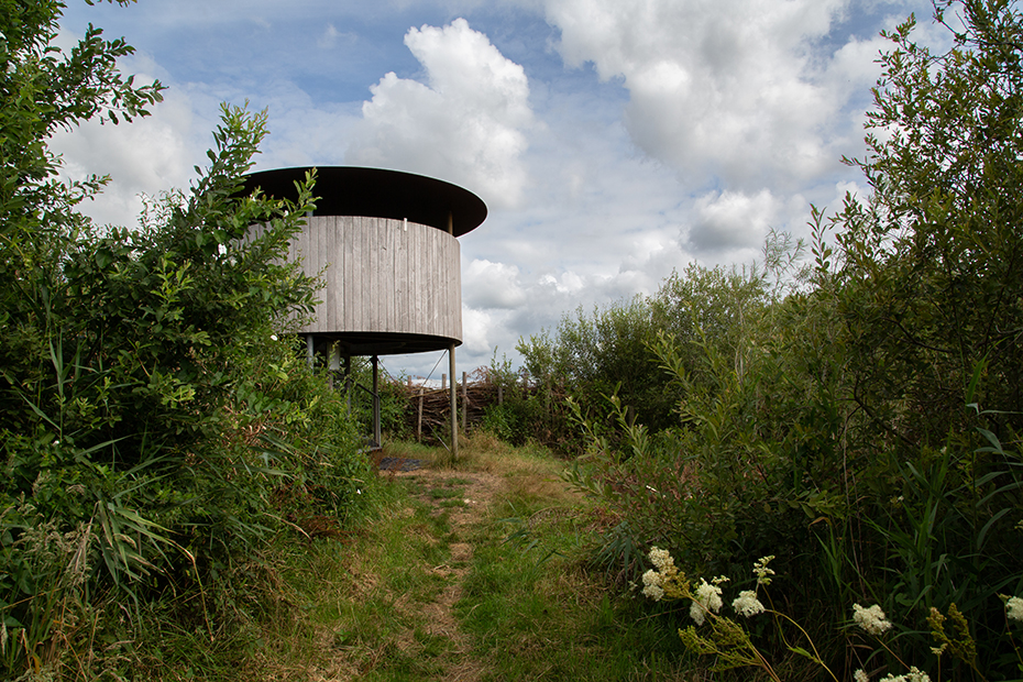 Langs het pad staan vele knotwilgen. Bijzonder om te zien hoe grillig gevormd ze zijn inclusief gaten en dat ze desondanks gewoon blijven leven en groeien. De knotwilgen worden geknot door vrijwilligers. De wilgentenen worden gebruikt voor vlechtschermen aan weerszijden van het pad om er voor te zorgen dat de mensen ongezien de kijkhut kunnen bereiken.