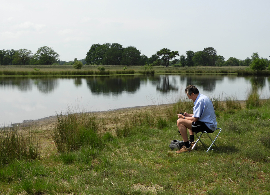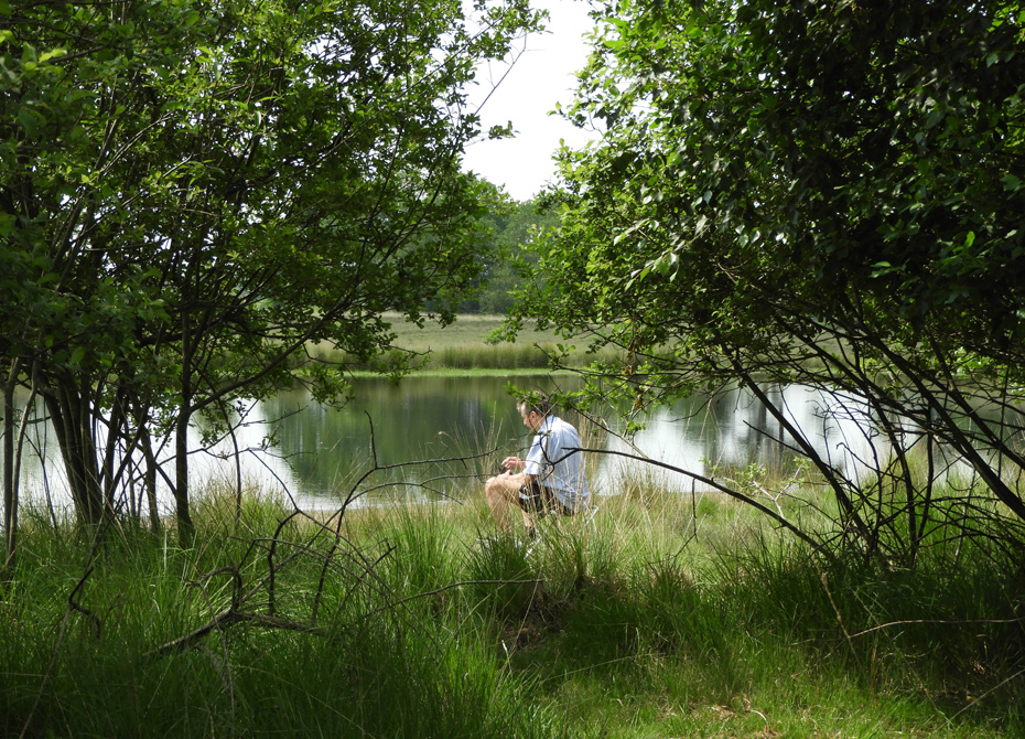 Terwijl ik nog bezig was met het fotograferen van de boterbloemen zag ik dat Jan een eindje verderop druk bezig was met het vastleggen van iets…